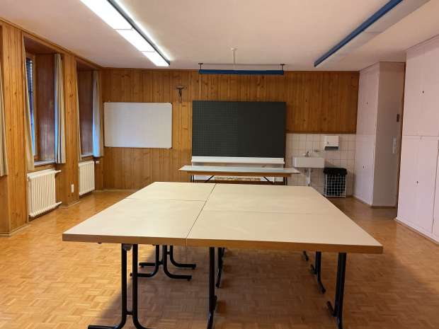 - Stühle: 20 (mehr aus Mehrzweckhalle)